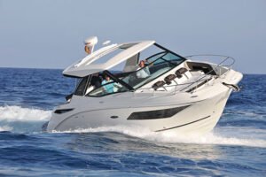 The Sundancer 320 Outboard continues a bold new chapter in the Sundancer story, blending the values of a cruiser and a sport boat/bow rider in one compelling and harmonious package. Thanks to an inventive reexamination of deck architecture, the bow area is more usable than ever before; meanwhile, the cockpit affords effortless, versatile enjoyment of the water, and the cabin provides a comfortable place to get out of the sun or tuck in for the night. Outboard power comes with zero tradeoffs in terms of space, comfort or enjoyment. A true natural, the Sundancer 320 Outboard reimagines the possibilities of how a cruiser can look, feel and perform.