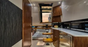 Own Your Command Center: The intuitive helm station features a Dual Digital Dash with 9″ Simrad® touchscreen displays and NAUTIC-ON™ Smart Boat System — Sea Ray Connect Remote Monitoring and Diagnostics. The dual helm seat provides all day comfort for navigating your favorite waters.